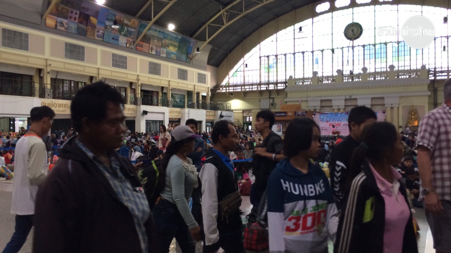 บรรยากาศที่สถานีรถไฟกรุงเทพหรือหัวลำโพง คึกคัก ประชาชนเริ่มทยอยเดินทางกลับภูมิลำเนาจำนวนมาก ตั๋วโดยสารถูกจองเต็มทุกเส้นทางทั้งสายเหนือ อีสานและใต้ ส่วนใหญ่จองตั๋วล่วงหน้า