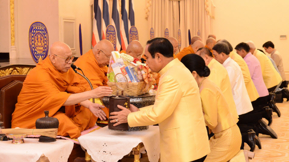 ทำเนียบฯ 3 ม.ค.- ผู้สื่อข่าวรายงานบรรยากาศ ที่ทำเนียบรัฐบาล วันนี้ (3 ม.ค.) ซึ่งเป็นวันแรกของการทำงาน ปี 2561 ได้มีพิธีทำบุญ เนื่องในโอกาสวันขึ้นปีใหม่ โดย พล.อ.ประยุทธ์ จันทร์โอชา นายกรัฐมนตรี และภริยา พร้อมคณะรัฐมนตรีและคู่สมรส ร่วมในพิธีเจริญพระพุทธมนต์ ณ ตึกสันติไมตรี (หลังนอก) ทำเนียบรัฐบาลด้วย จากนั้น ร่วมในพิธีตักบาตร ณ บริเวณสนามหญ้าข้างตึกไทยคู่ฟ้า มีข้าราชการแต่ละหน่วยงาน รวมถึง สื่อมวลชน เข้าร่วมตักบาตร เพื่อความเป็นสิริมงคลในปีใหม่นี้ด้วย