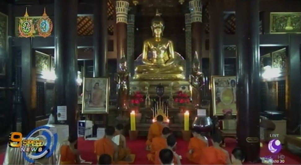 เชียงใหม่ 10 ต.ค.-เจ้าอาวาส วัดโลกโมฬี จ.เชียงใหม่ พร้อมพระภิกษุ สามเณร ร่วมสวด บทพระคาถา เพื่อถวายเป็นพระราชกุศลแด่พระบาทสมเด็จพระเจ้าอยู่หัว