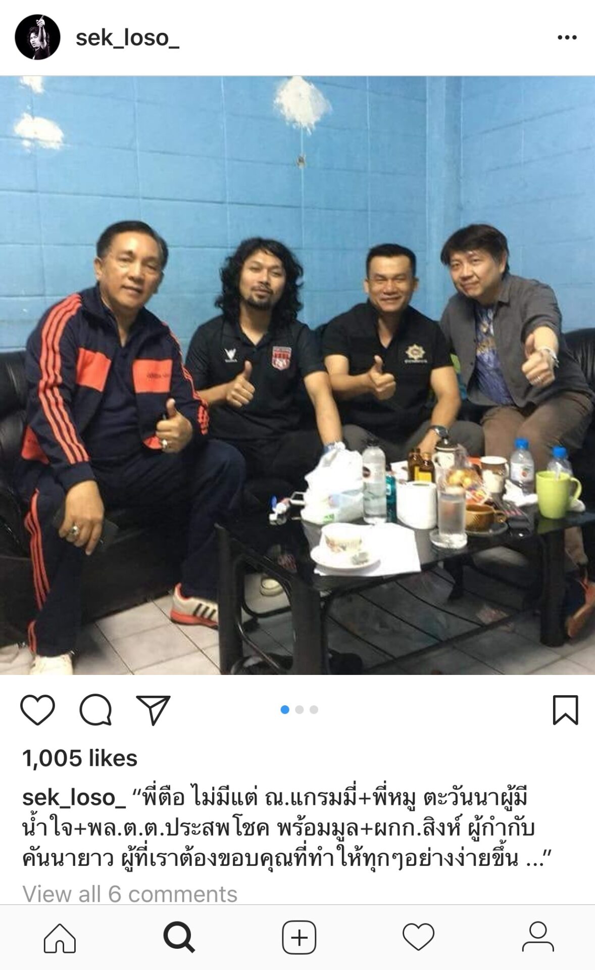 พล.ต.ท.ชาญเทพ เสสะเวช ผู้บัญชาการตำรวจนครบาล เปิดเผยกับสำนักข่าวไทยว่า ได้สั่งให้ พ.ต.สิงห์ สิงหเดช ผกก.สน.คันนายาว เขียนรายงานชี้แจงข้อเท็จจริง ภายใน 24 ชั่วโมง เบื้องต้นทราบว่าเป็นภาพเก่า เมื่อเช้ามืดวันที่ 1 มกราคม หลังจากคุมตัวมาจากบ้านพักของ เสก โลโซ โดยสถานที่ในภาพ เป็นห้องสืบสวน ระหว่างที่ ผกก. นั่งสืบสวนอยู่นั้น มีอดีต ผบก.ปทศ และอดีตเจ้านายของ “เสก” เดินทางมาขอเยี่ยม และมีการถ่ายภาพบันทึกไว้ ทั้งนี้จะรอดูรายงานชี้แจงข้อเท็จจริงก่อนว่า ผกก.บกพร่องต่อหน้าที่หรือไม่ แต่จากการโทรศัพท์พูดคุย ได้มีการต่อว่าไปแล้ว ว่าเป็นเรื่องที่ไม่เหมาะสมที่ไปนั่งกับผู้ต้องหาแบบนั้น