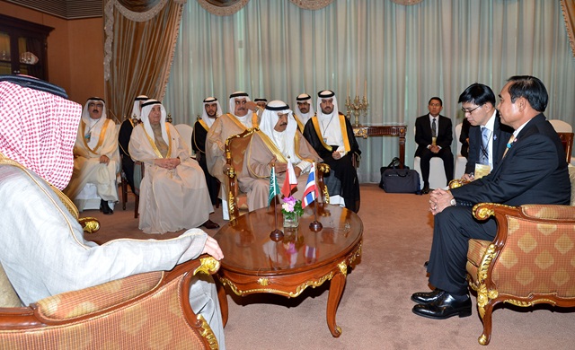 พล.อ.ประยุทธ์ จันทร์โอชา นายกรัฐมนตรี พบปะหารือ 3 ฝ่าย ร่วมกับเจ้าชายคอลิฟะห์ บิน ซัลมาน อัล คอลิฟะห์ นายกรัฐมนตรีแห่งราชอาณาจักรบาห์เรน (H.R.H.Prince Khalifa bin Salman Al-Khalifa) และนายอเดล อัล-จูเบอีร์ (H.E. Mr. Adel Al Jubeir) รัฐมนตรีต่างประเทศราชอาณาจักรซาอุดีอาระเบีย ณ ห้องสัตตบงกช กระทรวงการต่างประเทศ