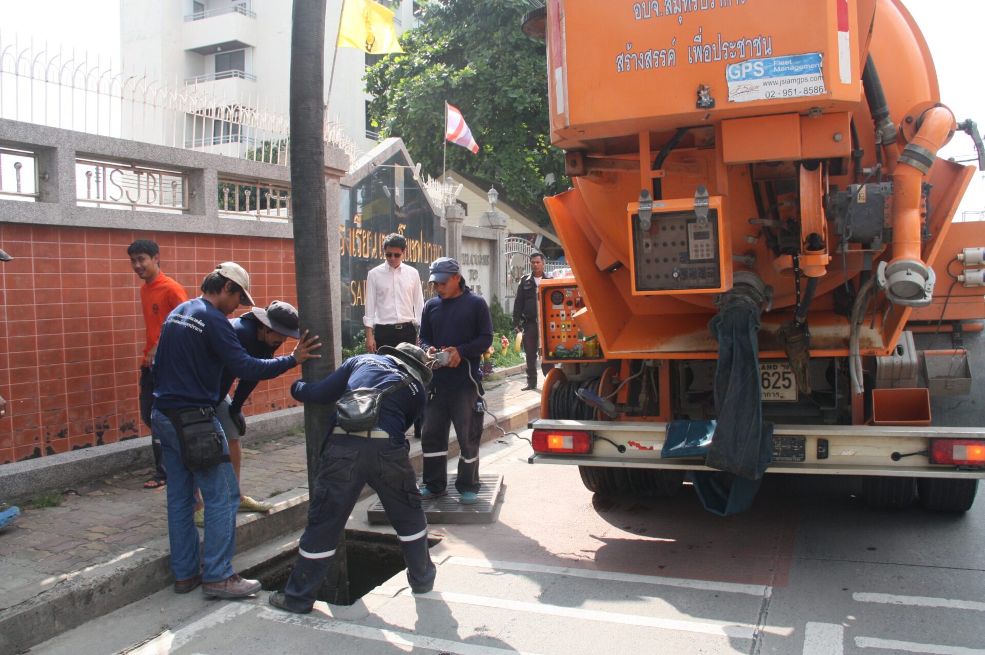 สมุทรปราการ 10 ต.ค.- สมุทรปราการบูรณาการแก้น้ำท่วมซ้ำซอยแบริ่ง หลังเกิดปัญหาเมื่อปลายเดือนที่ผ่านมา เร่งลอกท่อระบายน้ำตลอดแนว พบน้ำฝนระบายเร็วลงคลองสำโรง