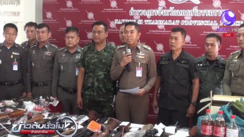 นครศรีธรรมราช 7 ม.ค. – พล.ต.ต.วันไชย เอกพรพิชญ์ ผู้บังคับการตำรวจภูธรจังหวัดนครศรีธรรมราช ตรวจสอบอาวุธปืนสงครามและปืนชนิดต่างๆ รวม 64 กระบอก ยาบ้ากว่า 200,000 เม็ด ยาไอซ์กว่า 7 กิโลกรัม มูลค่ากว่า 30 ล้านบาท ใบกระท่อม และยาแก้ไอ ซึ่งเป็นของกลางที่ได้จากการระดมกวาดล้างอาชญากรรมในจังหวัด ตั้งแต่ก่อนเทศกาลปีใหม่ต่อเนื่องถึงวันที่ 5 มกราคมที่ผ่านมา พร้อมจับกุมผู้ต้องหากว่า 500 คน ทั้งหมดเป็นผู้ต้องหาเป้าหมายที่เจ้าหน้าที่ติดตามพฤติกรรมมานาน มั่นใจกวาดล้างใหญ่ครั้งนี้ ทำให้อาชญากรรมในจังหวัดลดลง. – สำนักข่าวไทย