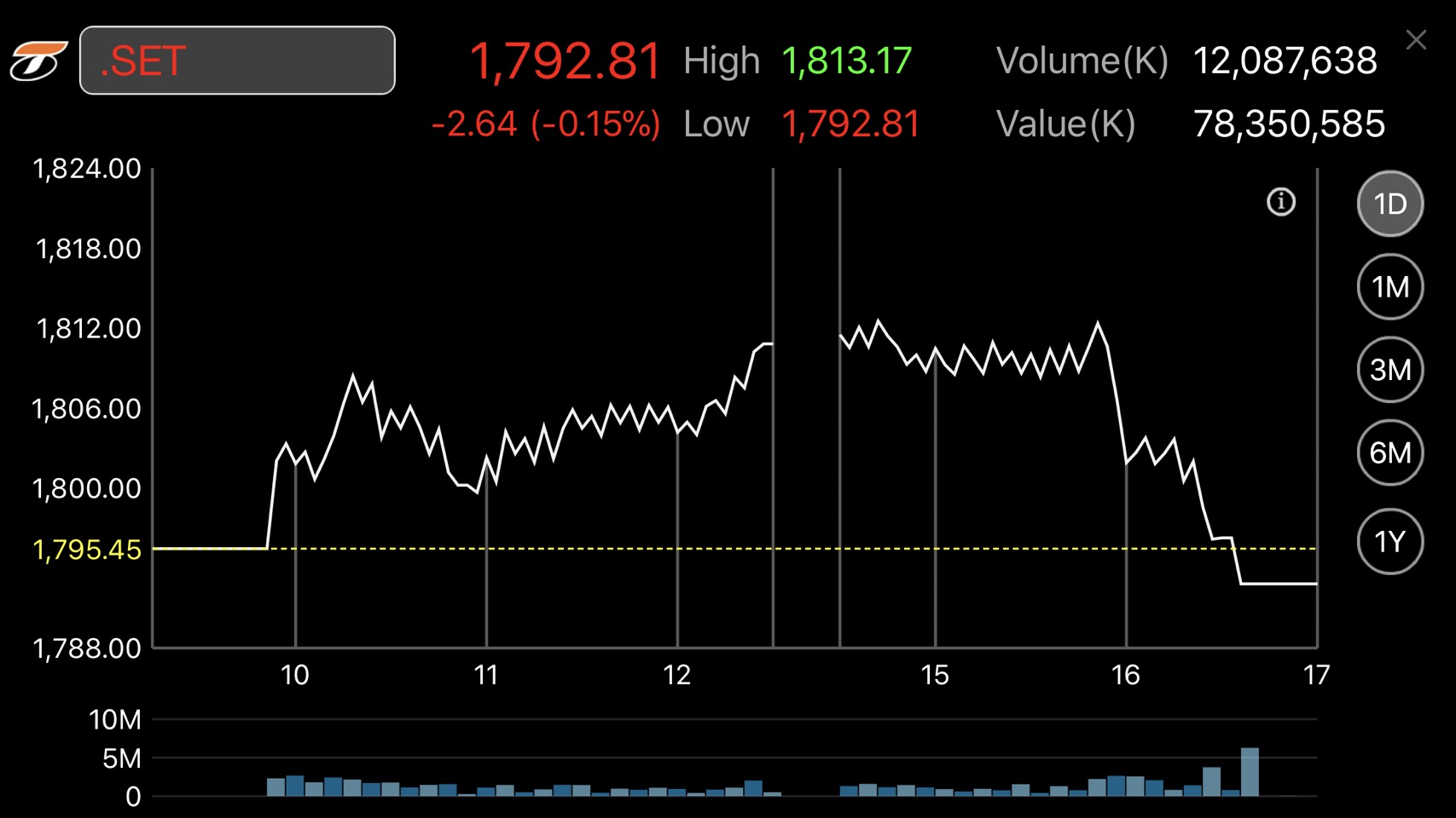 ผู้สื่อข่าวรายงานว่าดัชนีตลาดหลักทรัพย์ฯ ปิดการซื้อขายวันนี้ (8 ม.ค.) ที่ระดับ 1,792.81 จุด ลดลง 2.64 จุด หรือร้อยละ 0.15 มูลค่าการซื้อขาย 78,350.59 ล้านบาท โดยการเคลื่อนไหวของหุ้นไทยอยู่ในแดนบวกเกือบตลอดวัน โดยปรับตัวขึ้นตามตลาดหุ้นดาวโจนส์ของสหรัฐ แต่มาติดลบในช่วงท้ายตลาด ดัชนีสูงสุดของวันที่ 1,813.17 จุด และต่ำสุดที่ 1,792.81 ล้านบาท