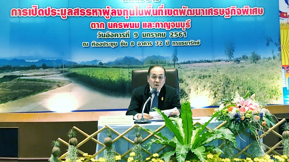นายปรีชา มงคลหัตถี ที่ปรึกษาการพัฒนาอสังหาริมทรัพย์ กรมธนารักษ์ แถลงข่าวเปิดประมูลสรรหาเอกชนเข้าร่วมลงทุนในพื้นที่เขตพัฒนาเศรษฐกิจพิเศษชายแดน รวม 5,397 ไร่ ใน 3 จังหวัด ประกอบด้วย ตาก 1,055 ไร่ นครพนม 1,363 ไร่ และกาญจนบุรี 2,979 ไร่ โดยกรมธนารักษ์จะเปิดให้เอกชนที่สนใจซื้อซองประมูลวันที่ 15 มกราคม – 9 กุมภาพันธ์ 2561 โดยเอกชนมีเวลาพิจารณาเงื่อนไขการประมูล 90 วัน เมื่อสนใจสามารถยื่นซองประมูลวันที่ 15 พฤษภาคม 2561 จากนั้นกรมธนารักษ์จะใช้เวลาพิจารณาภายใน 30 วัน โดยคาดว่าทั้ง 3 แปลงนี้จะสร้างรายได้ให้กับกรมธนารักษประมาณ 6,000 ล้านบาท์ในช่วง 50 ปีนับจากเอกชนได้สิทธิ์เช่า แบ่งเป็นค่าเช่าจังหวัดตากประมาณ 4,000 ล้านบาท กาญจนบุรีประมาณ 300-400 ล้านบาท และนครพนมค่าเช่าประมาณ 1,200 ล้านบาท