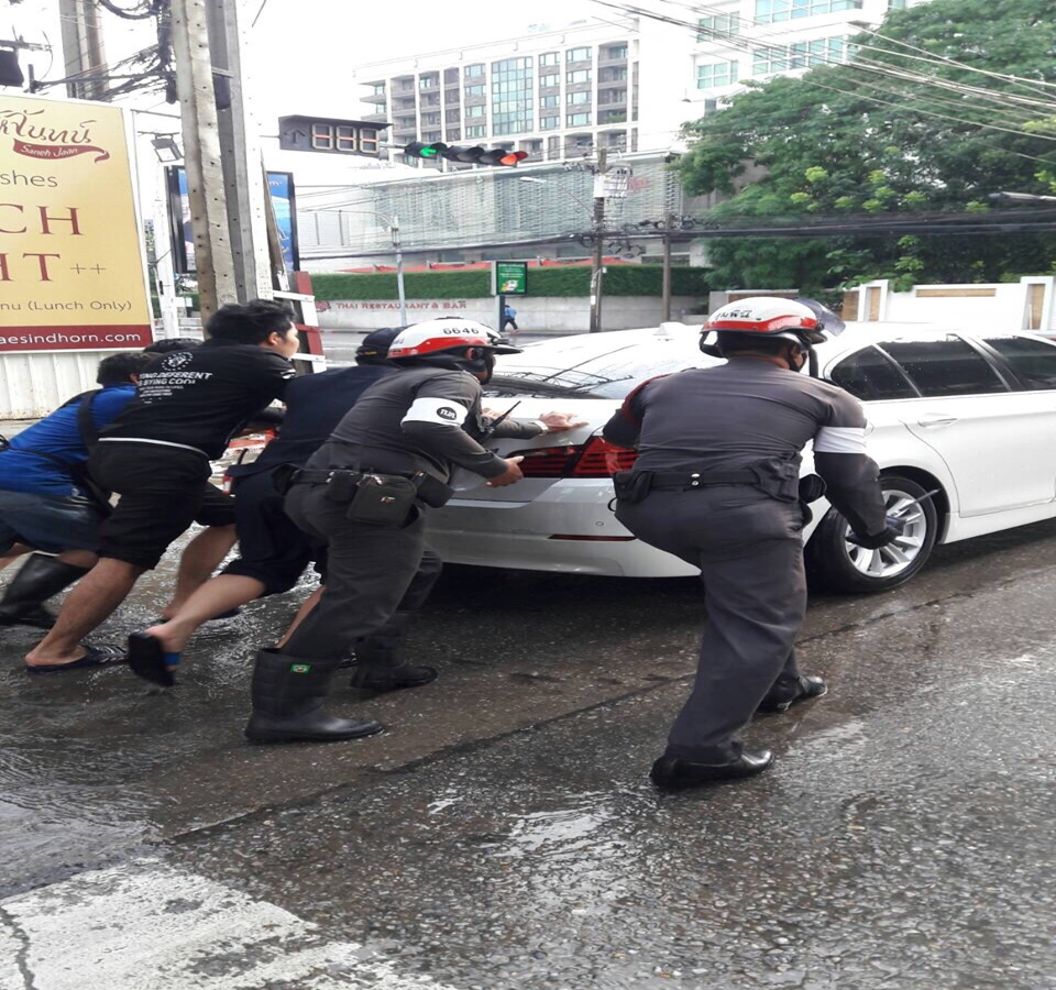 พลตำรวจตรีธีรศักดิ์ สุริวงศ์ ผู้บังคับการตำรวจจราจร เปิดเผยว่าสถานการณ์น้ำท่วมส่งผลกระทบต่อการจราจรในพื้นที่กรุงเทพฯ โดยเฉพาะในพื้นทีที่มีน้ำท่วมขังสูง 3 จุด จุดแรกคือ บริเวณถนนสุขุมวิท 62 ซึ่งมีปริมาณน้ำท่วมสูงเกิน 30 เซนติเมตร ในซอยปรีดีพนมยงค์31 และย่านลาดพร้าว ซึ่ง 3 จุดนี้เป็นจุดที่หนักสุด รถเล็กผ่านไม่ได้ ให้หลีกเลี่ยงโดยเด็ดขาด ขณะนี้ได้จัดส่งกำลังเจ้าหน้าที่ตำรวจโครงการพระราชดำริ และนำรถยกเข้าไปให้การช่วยเหลือและคอยอำนวยความสะดวกด้านการจราจร พร้อมแนะนำเส้นทางให้กับผู้ใช้รถใช้ถนน โดยเฉพาะรถจอดเสีย จะถูกยกออกไปทันทีเพื่อไม่ให้กีดขวางการจราจร