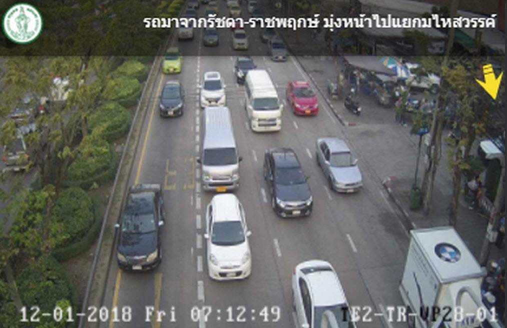สภาพจราจร จุดกลับรถลาดพร้าว 112 ขาเข้า รถมาก เคลื่อนตัวได้ ขาออก เคลื่อนตัวได้ดี ชะลอตัวช่องทางพิเศษตัดกระแส