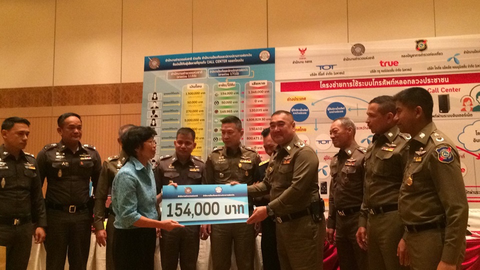 จากข้อมูลศูนย์ป้องกันและปราบปรามการฉ้อโกงประชาชนผ่านระบบโทรศัพท์และสื่ออิเล็กทรอนิกส์ สำนักงานตำรวจแห่งชาติ และ ปปง. ได้รับเรื่องร้องเรียนจากประชาชนที่ตกเป็นเหยื่อของแก๊งคอลเซ็นเตอร์ จำนวน 167 ราย สามารถออกหมายจับผู้ต้องหาได้ 275 ราย จับกุมได้แล้ว 162 ราย อยู่ระหว่างสืบสวนติดตาม 113 ราย ซึ่งจากการวิเคราะห์แผนประทุษกรรมของกลุ่มผู้ต้องหา พบว่า การใช้โทรศัพท์หลอกลวงผู้เสียหายมีการโทรศัพท์ผ่านระบบการสื่อสาร VOIP จากต่างประเทศ และมีการแปลงเลขหมายที่ปรากฎเป็นหมายเลขโทรศัพท์ของหน่วยงานรัฐเพื่อสร้างความน่าเชื่อถือ อาทิ หมายเลขโทรศัพท์ของสถานีตำรวจ ที่ทำการไปรษณีย์ ศาลที่มีเลขหมายซ้ำกัน จำนวน 50 หมายเลข ทำให้ประชาชนหลงเชื่อตกเป็นเหยื่อสูญเสียทรัพย์สินเป็นเงินจำนวนมาก ซึ่งสำนักงานตำรวจแห่งชาติจึงขอความร่วมมือจาก กสทช. และผู้ให้บริการโทรศัพท์ในประเทศ กำหนดแนวทางในการแก้ปัญหาดังกล่าว โดยจะปิดกั้นสัญญาณโทรศัพท์จากหมายเลขที่คนร้ายใช้โทรจากต่างประเทศมาหลอกลวงผู้เสียหาย