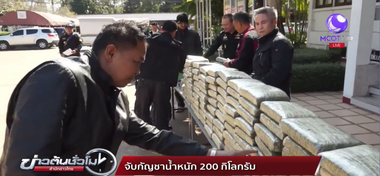 สกลนคร 12 ม.ค. – ตำรวจภูธรสกลนครนำกัญชาน้ำหนัก 200 กิโลกรัม ลงจากท้ายรถกระบะเพื่อตรวจนับ หลังเมื่อกลางดึกที่ผ่านมาเกิดอุบัติเหตุรถเก๋งทะเบียน กค 6824 นครนายก เสียหลักชนกับต้นไม้ใกล้กับอุทยานแห่งชาติภูพาน เมื่อตำรวจเข้าตรวจสอบพบถุงดำขนาดใหญ่ 3 ถุง ภายในบรรจุกัญชาแท่งอัดแห้งน้ำหนักรวม 200 กิโลกรัม ส่วนผู้บาดเจ็บเป็นเยาวชนชายอายุ 18 และ 16 ปี ถูกนำตัวโรงพยาบาลพระอาจารย์แบน ตำรวจจึงตามไปอายัดตัวดำเนินคดี. – สำนักข่าวไทย