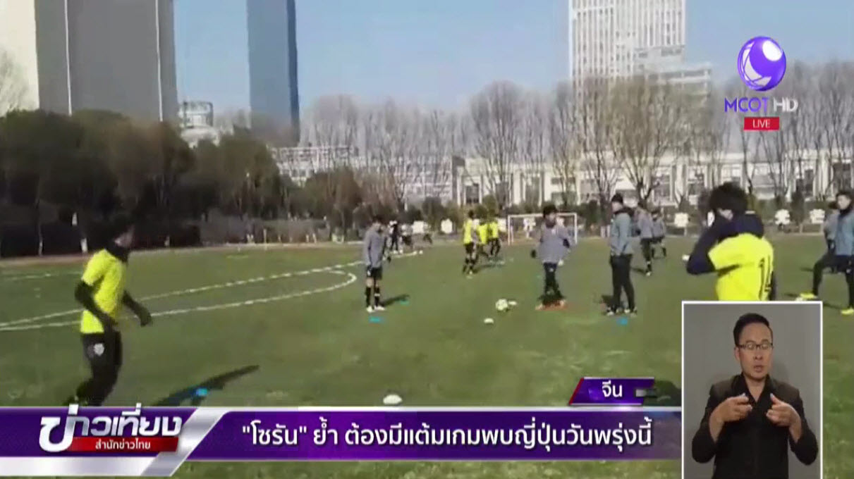 นักเตะทีมชาติไทย รุ่นอายุไม่เกิน 23 ปี ลงฝึกซ้อม เพื่อเตรียมพร้อมก่อนทำศึกฟุตบอลชิงแชมป์เอเชีย รุ่นอายุไม่เกิน 23 ปี รอบแบ่งกลุ่ม นัดที่ 2 ที่จะพบกับทีมชาติญี่ปุ่น ที่สนามเจียงหยิน สปอร์ต เซ็นเตอร์ โดยโซรัน ยานโควิช หัวหน้าผู้ฝึกสอนทีมชาติไทย คุมการฝึกซ้อมครั้งนี้ท่ามกลางสภาพอากาศ ติดลบ 2 องศาเซลเซียส เน้นที่การฟื้นฟูร่างกาย และพยายามแก้ไขข้อผิดพลาดทั้งหมด เพื่อไม่ให้เกิดขึ้นอีกในเกมกับญี่ปุ่น โดย รัตนากร ใหม่คามิ กองกลางที่มีอาการบาดเจ็บ ต้องแยกซ้อมกับนักกายภาพประจำทีม