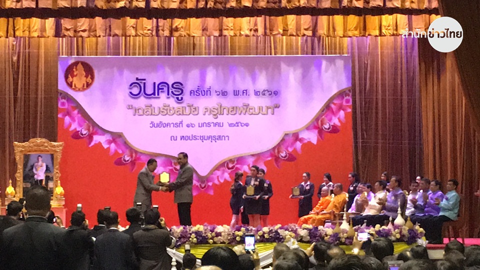 หอประชุมคุรุสภา 16 ม.ค.- นายกรัฐมนตรี ร่วมพิธีงานวันครู มอบรางวัลผู้มีคุณูปการต่อการศึกษาของชาติ ประจำปี 2561 คารวะครูที่เคยสอนสมัยเป็นนักเรียนนายร้อย จปร. ขอให้ครูมีศรัทธา เพราะเป็นบ่อเกิดของความสำเร็จ ย้ำต้องปฏิรูปการศึกษาอย่างจริงจัง ในเรื่องครู-สวัสดิการ ปรับการเรียนการสอนให้สนุก แจงประชาธิปไตยไทยนิยม คือสร้างความเข้าใจประชาธิปไตยที่ถูกต้อง ดีงาม