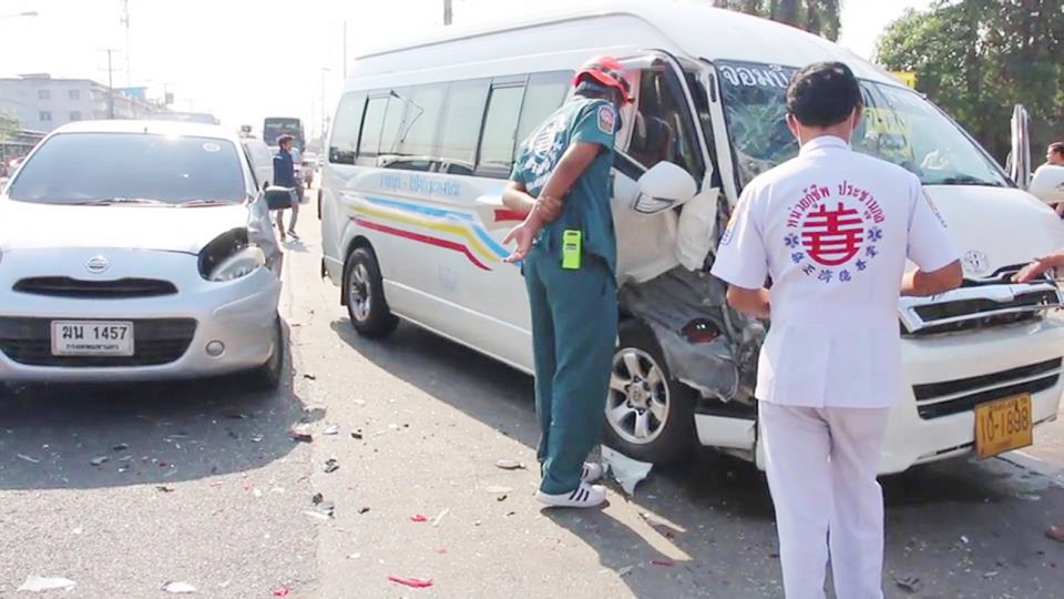 นายซิน เนียมเตียง อายุ 62 ปี คนขับรถตู้โดยสาร ให้การเบื้องต้นว่า ขณะพาผู้โดยสารไปส่งที่อำเภอจอมบึง เมื่อมาถึงบริเวณดังกล่าวมีรถกระบะชะลอหยุดกะทันหันเพื่อเลี้ยวกลับรถ จึงหักหลบไม่ทันชนรถกระบะกระเด็นไปอีกฝั่งและเสยคันอื่นอีก 2 คัน ซึ่งเจ้าหน้าที่จะต้องสอบปากคำคนขับทั้งหมดและผู้อยู่ในเหตุการณ์ ก่อนดำเนินคดีตามกฎหมาย.-สำนักข่าวไทย