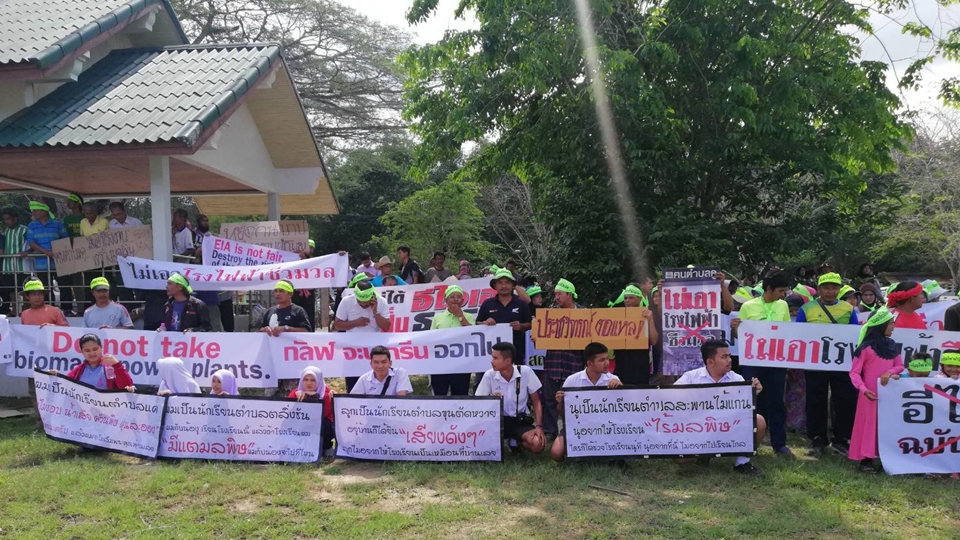 สงขลา 16 ม.ค.-ชาวบ้านกลุ่มรักษ์ถิ่นเกิดตำบลคู อ.จะนะ สงขลา แสดงพลังเรียกร้องให้หยุดการก่อสร้างโรงงานไฟฟ้าชีวมวลในพื้นที่ หลังบริษัทเอกชนเตรียมเดินหน้าปรับพื้นที่ก่อสร้างโรงไฟฟ้า ห่างจากโรงเรียนในชุมชนเพียง 120 เมตร หลังอีไอเอผ่านความเห็นชอบ แต่ชาวบ้านเห็นว่าไม่โปร่งใส