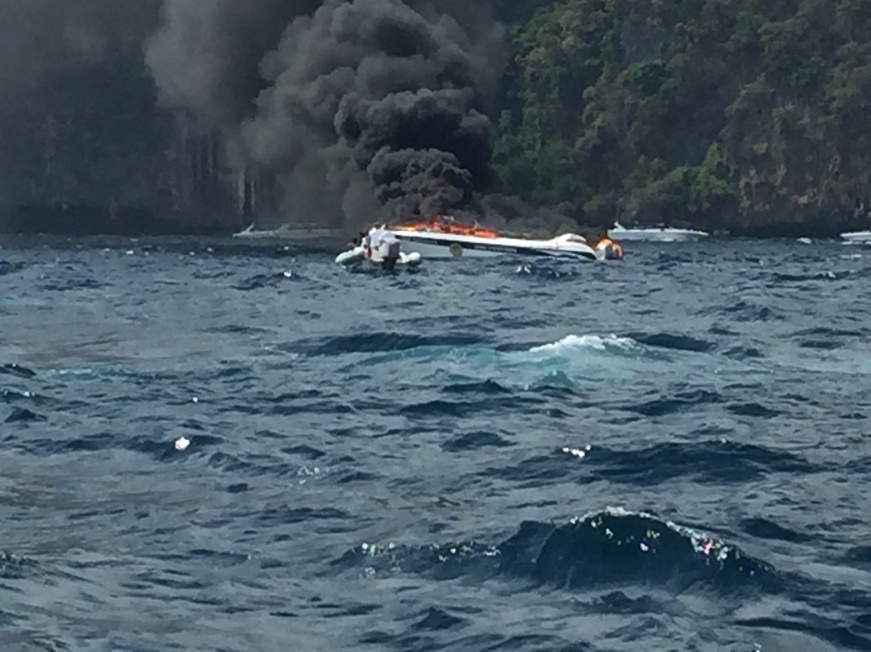 กระบี่ 17 ม.ค.- อาการ 2 นทท.จีนบาดเจ็บเหตุไฟไหม้สปีดโบ๊ทกลางทะเลกระบี่เริ่มดีขึ้น ล่าสุดแพทย์อนุญาตให้ย้ายไปรักษาต่อที่ภูเก็ตตามประสงค์ของญาติแล้ว 1 ราย ขณะที่อาการกัปตันยังสาหัส