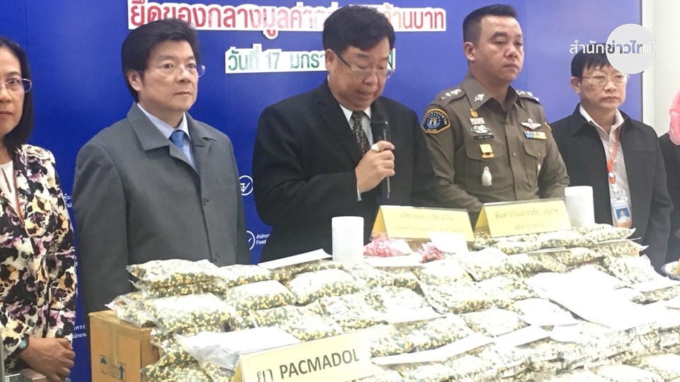 อย. 17 ม.ค.–อย.จับยาทรามาดอลปลอม ย่านปทุมธานี ยึดของกลางได้มูลค่า 5 ล้านบาท เตรียมขยายผลปิดช่องทางลักลอบจำหน่าย ห่วงนำยาไปใช้เป็นส่วนผสมยาเสพติด