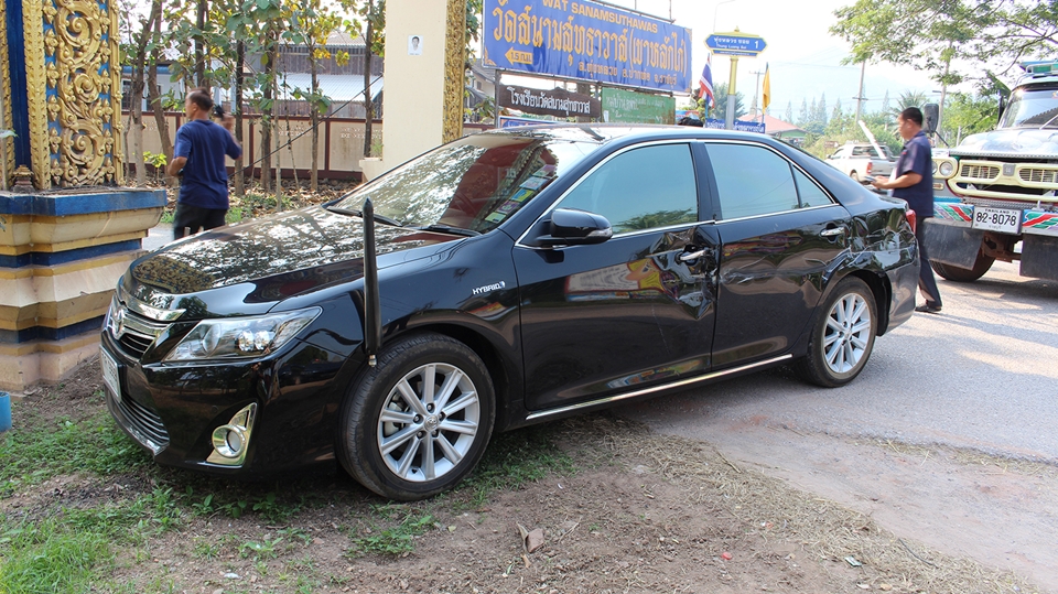 ตรวจสอบเบื้องต้นพบว่า รถยนต์ประจำตำแหน่งผู้ว่าฯ บริเวณด้านซ้ายมีสภาพยุบเสียหายเป็นทางยาว บริเวณหัวรถเก๋งเกือบชนกับเสาซุ้มประตูวัด ส่วนรถบรรทุกหกล้อ คู่กรณี ซึ่งบรรทุกดินลูกรังมาเต็มคัน มีร่องรอยการเฉี่ยวชนที่ด้านขวาจนกันชนหน้าฉีกขาด