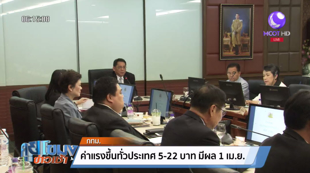 นายจรินทร์ จักกะพาก ปลัดกระทรวงแรงงาน ในฐานะประธานคณะกรรมการค่าจ้าง ให้สัมภาษณ์ภายหลังการประชุมพิจารณาปรับขึ้นค่าแรงขั้นต่ำ ซึ่งใช้เวลาประชุมเกือบ 7 ชั่วโมง ว่า ที่ประชุมมีมติปรับขึ้นค่าแรงขั้นต่ำทั่วประเทศทั้ง 77 จังหวัด โดยปรับตั้งแต่ 5-22 บาท แบ่งเป็นทั้งหมด 7 ระดับ ตามสภาพความเจริญทางเศรษฐกิจ ซึ่งจังหวัดที่ได้รับการปรับขึ้นสูงสุด คือ ภูเก็ต ชลบุรี และระยอง 330 บาท รองลงมา 325 บาท คือ กรุงเทพมหานครและปริมณฑล