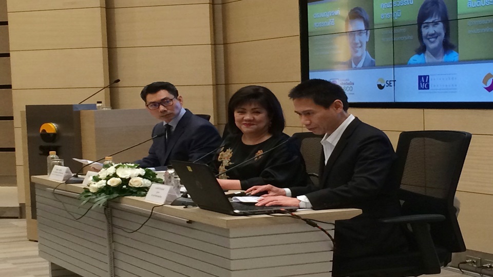 นายสันติ กีระนันทน์ ผู้แทนสภาธุรกิจตลาดทุนไทย เปิดเผยว่า ภาวะการลงทุนเดือนธันวาคม 2560 ดัชนีตลาดหุ้นไทยมีการเคลื่อนไหวเพิ่มขึ้น ปิดที่ 1,753.71 จุด ใกล้เคียงกับดัชนีปิดทำการสูงสุดในประวัติศาสตร์ จากเศรษฐกิจไทยปี 2560 ที่คาดว่าจะขยายตัวร้อยละ 3.9 และคาดว่าปี 2561 เศรษฐกิจจะขยายตัว ร้อยละ 3.9 – 4.1 จากการฟื้นตัวของภาคการลงทุนเอกชน การลงทุนระบบสาธารณูปโภคของภาครัฐ การบริโภคภาคเอกชนเริ่มฟื้นตัวขึ้น การท่องเที่ยวเติบโตชัดเจน ค่าเงินบาทแข็งค่า ทำให้ความเชื่อมั่นนักลงทุนส่วนใหญ่ยังคงอยู่ในระดับร้อนแรง ขณะที่ภาวะเศรษฐกิจในภูมิภาคมีการเติบโตและตลาดหุ้นสหรัฐโตต่อเนื่อง แต่ความขัดแย้งในกลุ่มประเทศตะวันออกกลางและคาบสมุทรเกาหลียังเป็นปัจจัยกดดันการลงทุน
