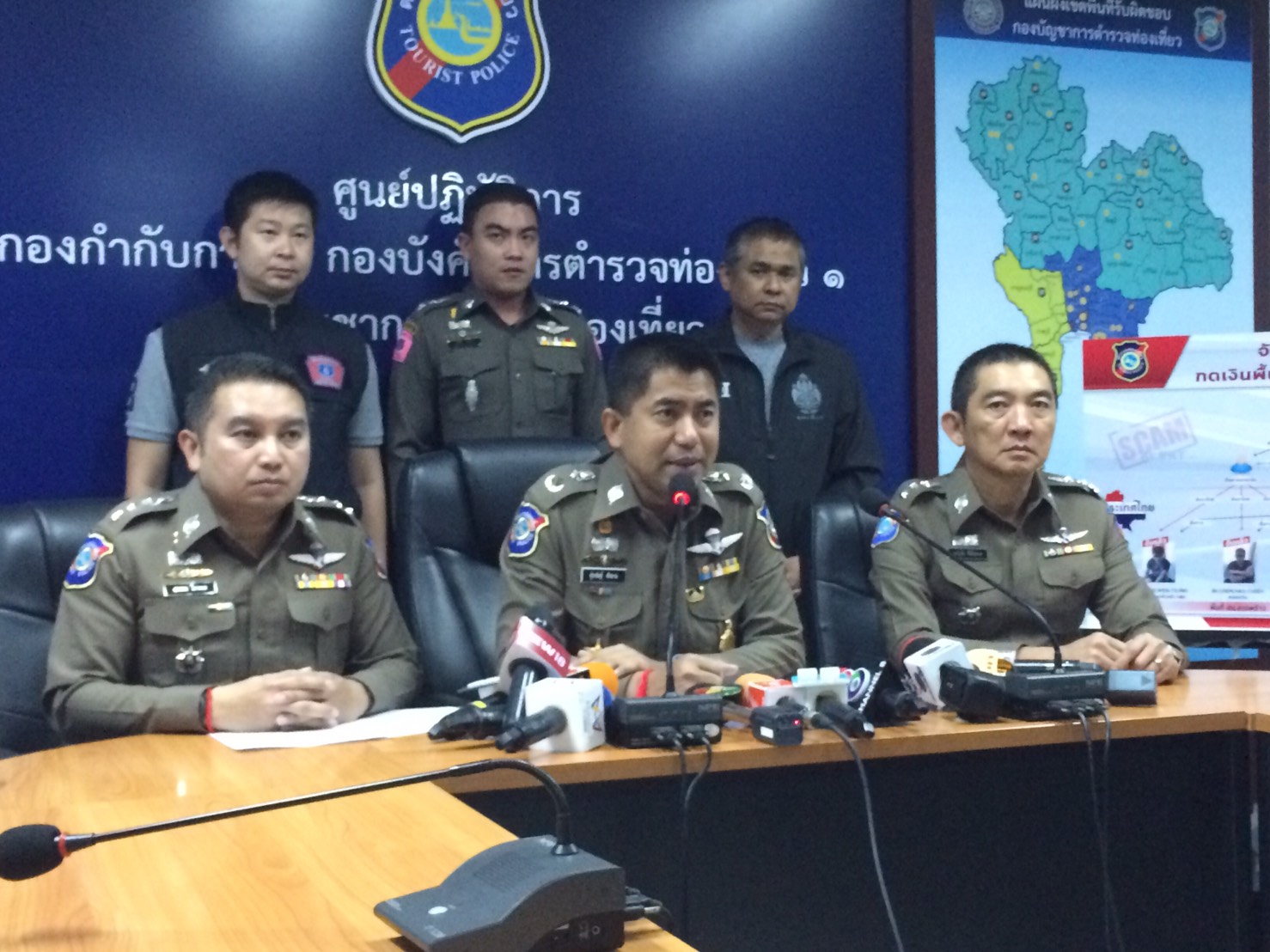ทั้งนี้ เป็นการขยายผลจากวันที่ 17 มกราคมที่ผ่านมา ตำรวจท่องเที่ยวจับกุมแก๊งค์คอลเซ็นเตอร์ ระดับกดเงินคือนายซือ เซิน หง อายุ20 ปี พร้อมพวกอีก 3 คน และสมุดบัญชีธนาคาร 5 เล่ม บัตรเอทีเอ็ม 4 ใบ เงินสดเกือบ 1 แสนบาท และสลิปกดเงินจำนวนหนึ่ง โดยจับกุมได้ในแมนชั่นแห่งหนึ่ง ย่านลาดพร้าว 130 แขวงคลองจั่น เขตบางกะปิ มีหลักฐานเป็นภาพวงจรปิดซึ่งขบวนการนี้ จะตระเวนกดเงินที่ได้จากการโทรหลอกลวงเหยื่อ และจากการสอบปากคำทั้ง 3 ให้การซัดทอดไปยังนายสือโถว ตัวบงการใหญ่ โดยมีเหยื่อหลงเชื่อคิดเป็นมูลค่าความเสียหายรวมกัน เกือบ 100 ล้านบาท ตำรวจได้แจ้งข้อหาร่วมกันมีไว้ เพื่อนำออกใช้ และร่วมกันใช้บัตรอิเล็คทรอนิกส์ ของผู้อื่นโดยมิชอบ และในวันพรุ่งนี้(22 ม.ค.) ตำรวจจะเสนอศาลออกหมายจับคนไทย ที่รับจ้างเปิดบัญชีให้กับแก๊งค์ดังกล่าว