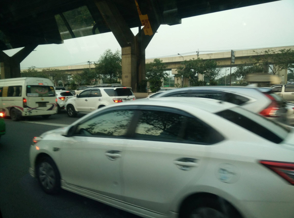 ถนนวิภาวดีรังสิต จากแยกหลักสี่ ดอนเมือง บริเวณแยกไฟแดงจากช่องทางคู่ขนานเข้า ถนนโรคัลโรด การจราจรติดขัด สลับหยุดนิ่ง