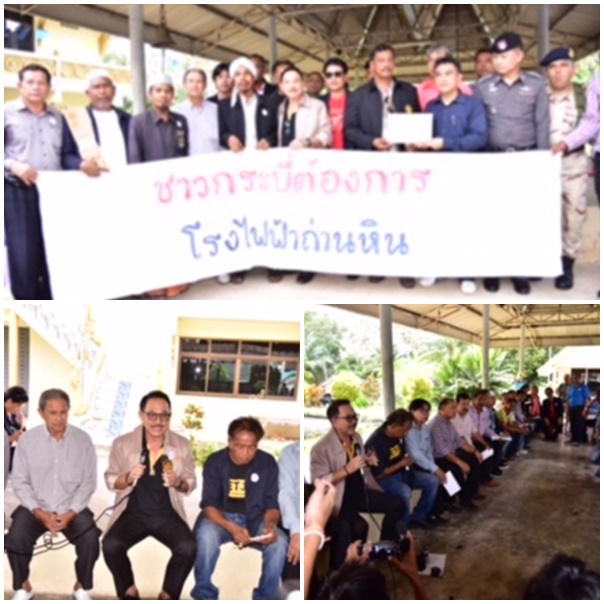กระบี่ 28 ม.ค. – ตัวแทนเครือข่ายประชาชนในพื้นที่จังหวัดกระบี่ พร้อมด้วยประชาชนจังหวัดกระบี่ นำโดยนายฐานิส เอ่งฉ้วน ประธานชมรมกำนันผู้ใหญ่บ้าน อำเภอเหนือคลอง จังหวัดกระบี่ แถลงจุดยืนเพื่อแสดงเจตนารมณ์ที่จะสนับสนุนให้มีการก่อสร้างโรงไฟฟ้าถ่านหินกระบี่ เนื่องจากเป็นความต้องการของประชาชนในพื้นที่จังหวัดกระบี่อย่างแท้จริง ซึ่งต้องการความมั่นคงทางพลังงานและไม่อยากให้เกิดเหตุการณ์ไฟฟ้าดับทั่ว 14 จังหวัดภาคใต้เหมือนในอดีตที่ผ่านมา จนก่อให้เกิดความเสียหายไปทุกภาคส่วน โดยเฉพาะภาคการท่องเที่ยว ทั้งนี้ พลังงานไฟฟ้าถือเป็นปัจจัยหลักที่ต้องมีความมั่นคงและเชื่อถือได้ จึงจะสร้างความเชื่อมั่นให้กับนักท่องเที่ยวได้ ณ วัดคลองขนาน ก่อนเข้าร่วมเวทีรับฟังความคิดเห็นของประชาชนและผู้มีส่วนได้เสียในการกำหนดขอบเขตและแนวทางการประเมินผลกระทบสิ่งแวดล้อมและสุขภาพ (Public Scoping หรือ ค.1) โครงการโรงไฟฟ้าพลังความร้อนกระบี่ (ส่วนขยาย ครั้งที่ 1) ณ ที่ทำการ อบต.คลองขนาน ตำบลคลองขนาน อำเภอเหนือคลอง จังหวัดกระบี่.-สำนักข่าวไทย