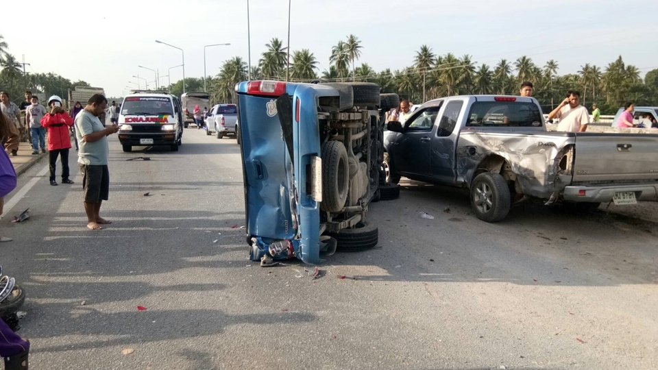 เมื่อเวลา 09.00 น.วันนี้(28 ม.ค.) พ.ต.ท.เกษมสิทธิ์ จำปาทอง สารวัตร(สอบสวน) สภ.ท่าศาลา จ.นครศรีธรรมราช ได้รับแจ้งเหตุรถชนกัน 7 คันรวดบนถนนสายท่าศาลา-สิชล หมู่ 4 ต.กลาย อ.ท่าศาลา มีผู้เสียชีวิตและบาดเจ็บหลายราย จึงรุดไปตรวจสอบพร้อม พ.ต.อ.เชิดชัย โชติสุทธิ์ ผกก.สภ.ท่าศาลา แพทย์เวร รพ.ท่าศาลา และเจ้าหน้าที่กู้ภัยมูลนิธิประชาร่วมใจ