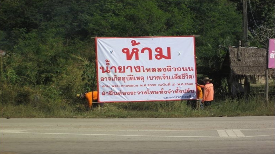 นอกจากนี้ ยังสั่งการให้สำนักงานทางหลวง แขวงทางหลวง ในพื้นที่บังคับใช้กฎหมายอย่างเข้มข้น การกระทำดังกล่าวเป็นความผิดตาม พ.ร.บ.ทางหลวง2535 มาตรา 45 ซึ่งกำหนดห้ามไม่ให้ผู้ใดทิ้งขยะมูลฝอย สิ่งปฏิกูล น้ำเสีย น้ำโสโครก เศษหิน ดิน ทราย หรือสิ่งอื่นใดในเขตทางหลวง หรือกระทำด้วยประการใด ๆ เป็นเหตุให้ขยะมูลฝอย สิ่งปฏิกูล เศษหิน ดิน ทราย ตกหล่นบนทางจราจรหรือไหล่ทาง หากเจ้าพนักงานทางหลวงหรือตำรวจพบเห็นการกระทำความผิดดังกล่าวสามารถจับกุมผู้กระทำความผิดดำเนินคดีได้ทันที ซึ่งมีโทษตามมาตรา 72 คือจำคุกไม่เกิน 3 ปี หรือปรับไม่เกิน 60,000 บาท หรือทั้งจำทั้งปรับ ถือว่าเป็นกฎหมายที่มีโทษหนักมาก แต่เพื่อสร้างความปลอดภัยให้แก่ผู้ใช้รถใช้ถนน กรมทางหลวงขอความร่วมมือผู้ใช้ทางขับรถด้วยความไม่ประมาท รวมทั้งคาดเข็มขัด เปิดไฟหน้า ใช้ความเร็วตามป้ายแนะนำของกรมทางหลวง หากพบเห็นรถบรรทุกน้ำยางพาราทำน้ำยางหล่นบนทางหลวงสามารถโทรแจ้งได้ที่สายด่วนกรมทางหลวง 1586.-สำนักข่าวไทย