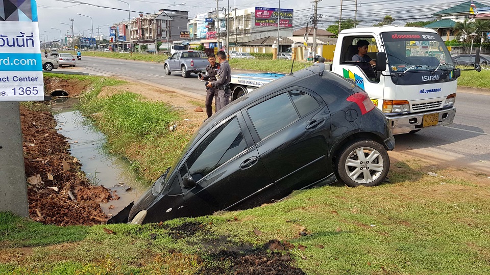 พ.ต.ท.ทวีป เงินดี รอง ผกก. สอบสวน สภ.โคกขาม อ.เมือง จ.สมุทรสาคร ได้รับรายงานเหตุเวลา 08.30 น. วันนี้ (30 ม.ค.) รถยนต์ 2 คัน ขับไล่กันมาอย่างน่าหวาดเสียวก่อนที่อีกคันเสียหลักตกลงร่องน้ำข้างทาง บริเวณหน้าปั้มน้ำมันริมถนนสายเอกชัย-มหาชัย ม.4 ต.โคกขาม จึงนำชุดเจ้าหน้าที่เข้าตรวจสอบเป็นรถยนต์รุ่นยาริส สีดำ ทะเบียน ชฮ 4997 กทม.