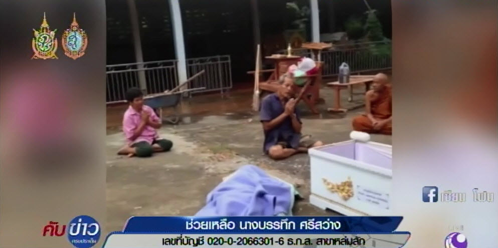 ผู้สื่อข่าวได้รับแจ้งว่าที่วัดไตรภูมิ ต.สักหลง อ.หล่มสัก จ.เพชรบูรณ์ ได้มีการนำศพของผู้ตายรายหนึ่งไปตั้งบำเพ็ญกุศลที่วัดไตรภูมิ หมู่ 3 ต.สักหลง อ.หล่มสัก จ.เพชรบูรณ์ เนื่องจากผู้เป็นแม่ไม่มีเงินทำศพผู้เสียชีวิตซึ่งเป็นลูก และได้มีผู้ใช้เฟซบุ๊กนามว่า “เซียนโฟน” โพสต์ข้อความขอความช่วยเหลือจากผู้ใจบุญ จึงเดินทางไปตรวจสอบพบ นางบรรทึก ศรีสว่าง อายุ 63 ปี ซึ่งเป็นแม่ เล่าว่า ตนเองมีอาชีพรับจ้างทั่วไป ส่วนสามีได้บวชเป็นพระมีลูกทั้งหมด 3 คน ล้วนแต่มีอาชีพรับจ้างก่อสร้าง ฐานะทุกคนยากจนมาก ส่วนผู้ที่เสียชีวิต คือ นายประกาศิต พันโยสี อายุ 21 ปี เป็นลูกคนเล็กป่วยเป็นโรคติดเชื้อในสมอง รักษาตัวอยู่ที่โรงพยาบาลมากว่า 5 เดือน