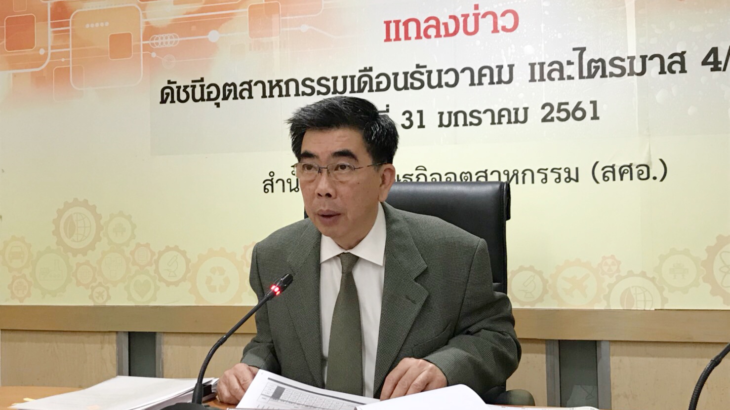 กรุงเทพฯ -31 ม.ค.- ดัชนีผลผลิตอุตสาหกรรมปี โตร้อยละ 1.58 จากเป้าหมายร้อยละ 1.50 ส่วนปี 2561 ตั้งเป้าหมายที่จะมีการขยายตัวเพิ่มขึ้น ร้อยละ 1.5 – 2.5
