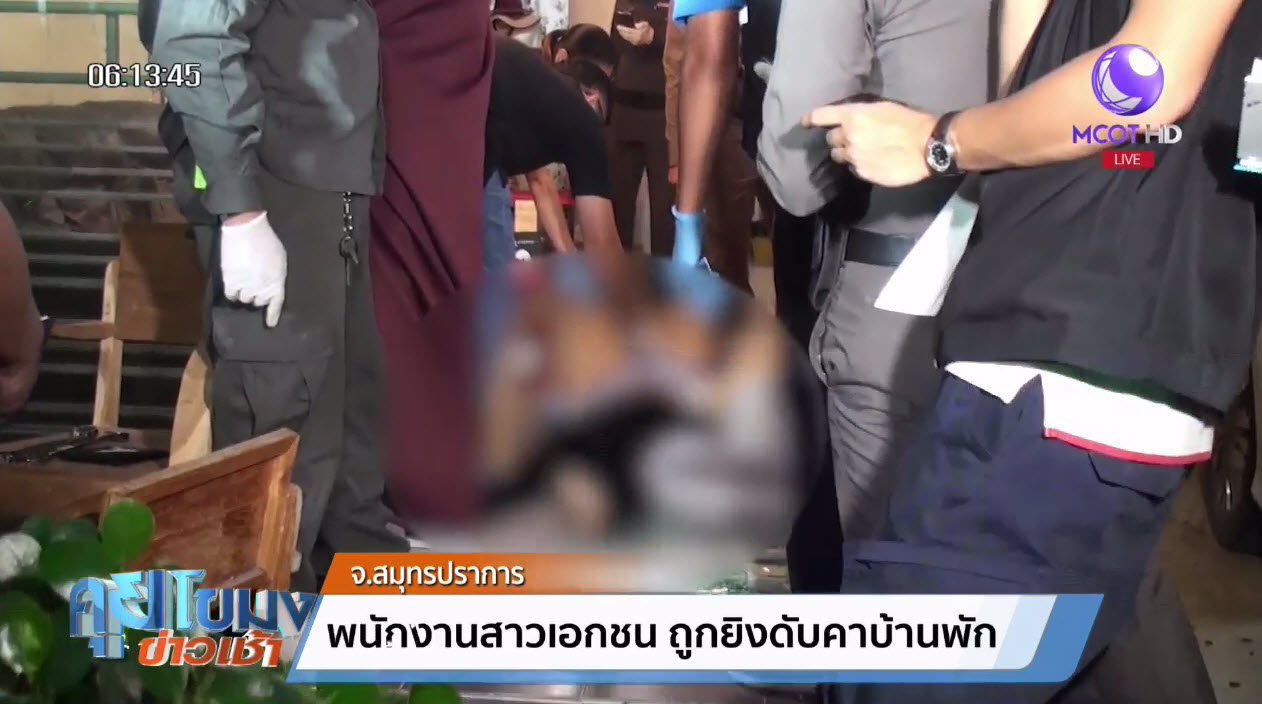 สมุทรปราการ 1 ก.พ.-พนักงานสาวหน้าตาดีของบริษัทเอกชนแห่งหนึ่งถูกยิงแสกหน้าดับคาบ้านพักย่านสมุทรปราการ สาเหตุเจ้าหน้าที่สันนิษฐานไว้ 2 ประเด็นคือ ขัดแย้งเรื่องส่วนตัว และชู้สาว