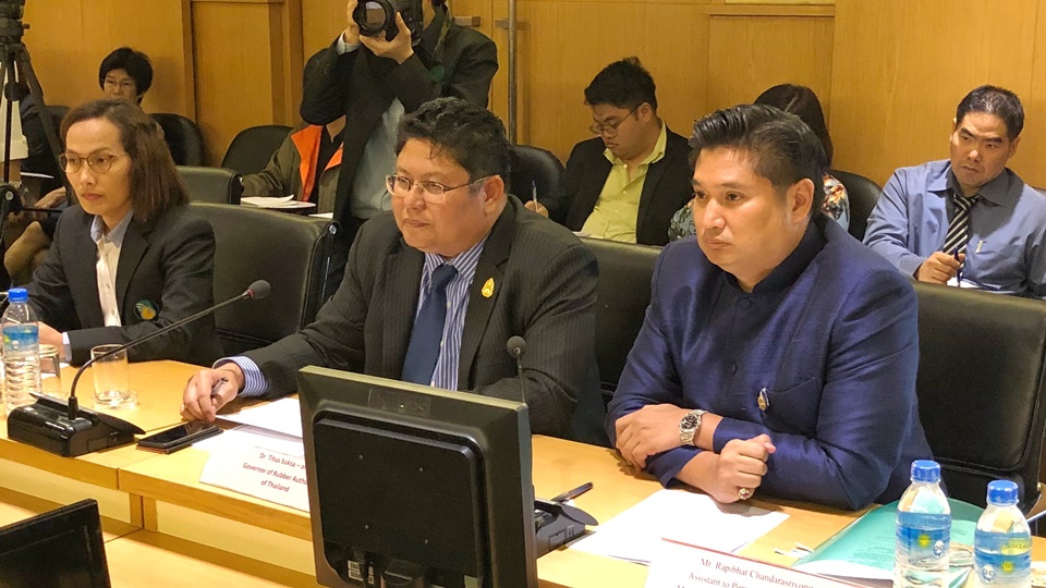 นายระพีภัทร์ จันทรศรีวงศ์ ผู้ช่วยปลัดกระทรวงเกษตรและสหกรณ์ พร้อมด้วย นายธีธัช สุขสะอาด ผู้ว่าการการยางแห่งประเทศไทย (กยท.) และสภาไตรภาคียางพาราระหว่างประเทศ (ไอทีอาร์ซี) แถลงผลการดำเนินการตามมาตรการควบคุมการส่งออกยาง หรือเออีทีเอสในช่วง 3 เดือน