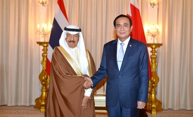 พล.อ.ประยุทธ์ จันทร์โอชา นายกรัฐมนตรี เข้าเฝ้าฯ เพื่อหารือทวิภาคีกับ เจ้าชาย คอลิฟะห์ บิน ซัลมาน อัล คอลิฟะห์ นายกรัฐมนตรีแห่งราชอาณาจักรบาห์เรน ณ ห้องสีงาช้าง ตึกไทยคู่ฟ้า ทำเนียบรัฐบาล