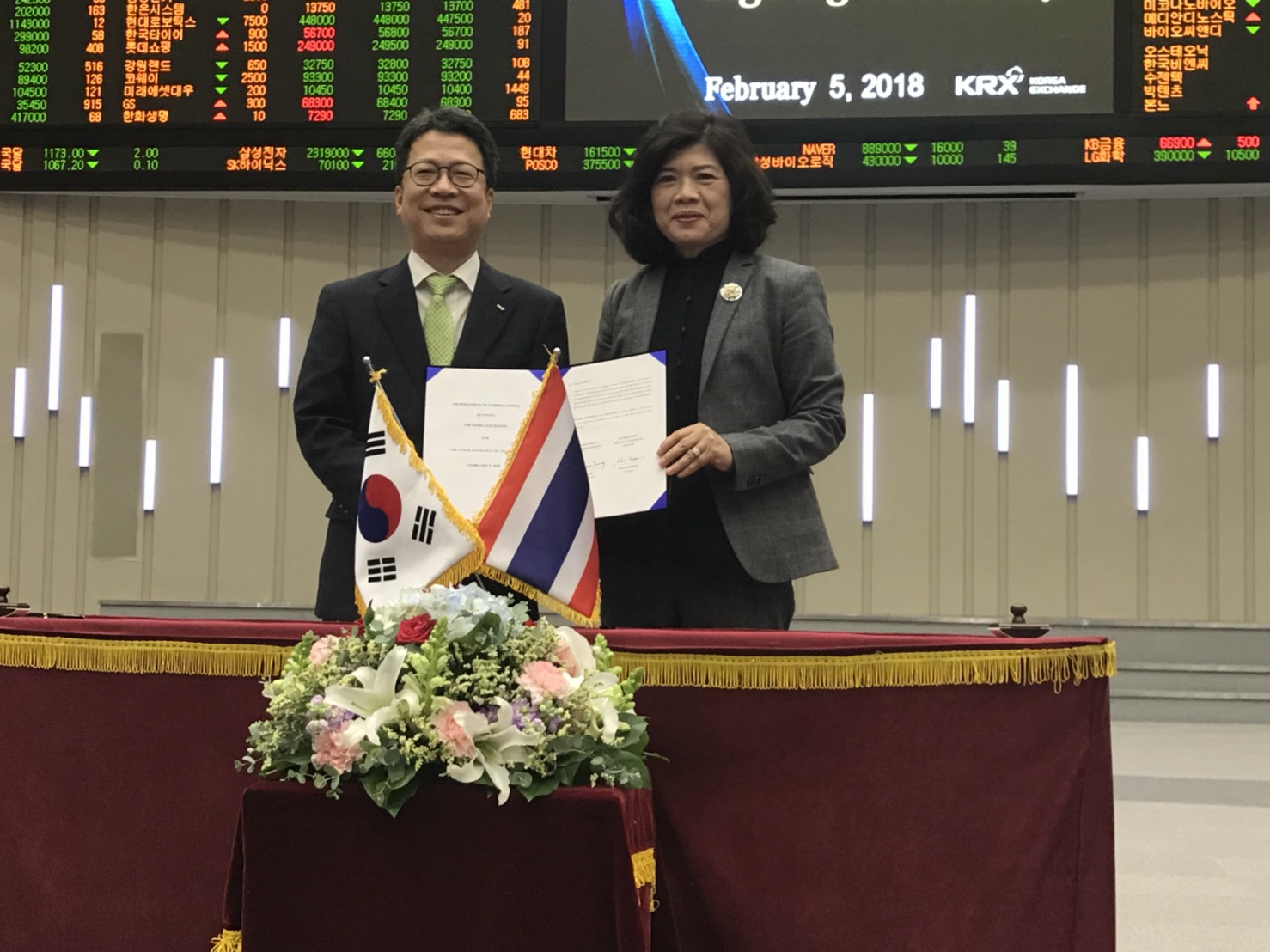 นายจีวอน จอง ประธานเจ้าหน้าที่บริหาร ตลาดหลักทรัพย์เกาหลี กล่าวว่า ตลาดหลักทรัพย์เกาหลี ได้ริเริ่มนวัตกรรมมาสู่ตลาดหลักทรัพย์ในภูมิภาค ด้านธุรกิจข้อมูลและการสร้างระบบการระดมทุนใหม่สำหรับสตาร์ทอัพ ในขณะที่ตลาดหลักทรัพย์แห่งประเทศไทยประสบความสำเร็จในการเติบโตทั้งในเชิงปริมาณและคุณภาพ พร้อมการเป็นผู้นำในระดับภูมิภาค เมื่อผนวกความสำเร็จของตลาดหลักทรัพย์ทั้ง 2 แห่งเข้าด้วยกัน ตลาดหลักทรัพย์เกาหลีเชื่อว่า ความร่วมมือกับตลาดหลักทรัพย์แห่งประเทศไทยจะนำไปสู่บทบาทใหม่ในการสร้างการเติบโตของธุรกิจตลาดหลักทรัพย์ในภูมิภาคเอเชียแปซิฟิกต่อไป