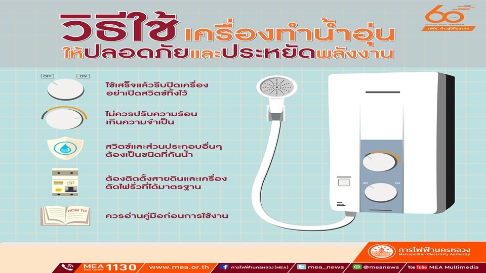 กรุงเทพฯ 6 ก.พ. – กฟน.ห่วงใยประชาชนช่วงอากาศหนาวเย็น แนะใช้เครื่องทำน้ำอุ่นเพื่อความปลอดภัย
