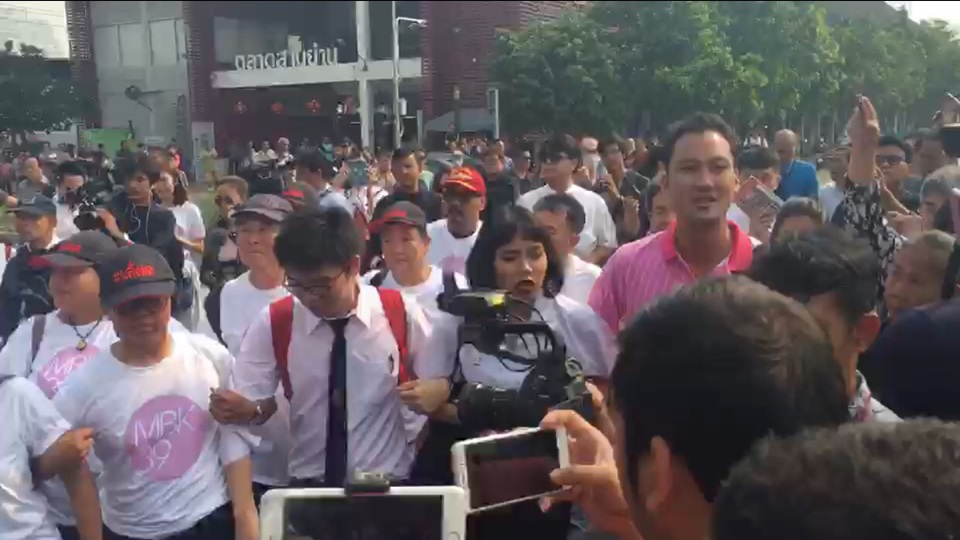 กรุงเทพฯ 8 ก.พ.- แกนนำผู้ชุมนุมสกายวอร์ค พร้อมผู้ชุมนุมกว่า 30 คน เข้ารับทราบข้อกล่าวหา