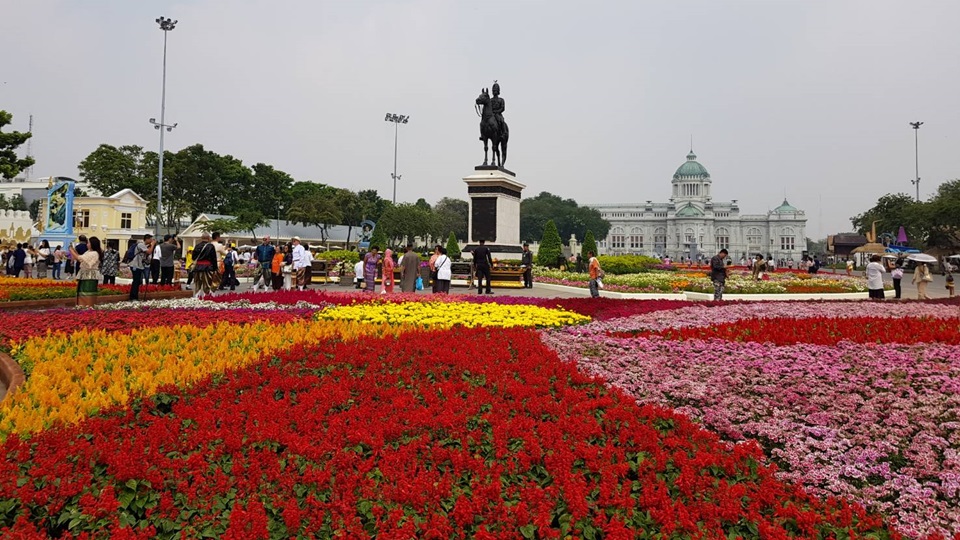 โซนแรกลานพระราชวังดุสิต ถูกเนรมิตให้เป็นสวนดอกไม้หลากสีสันนานาพรรณ กว่า2 แสนต้น ด้วยพระมหากรุณาธิคุณของสมเด็จพระเจ้าอยู่หัว รัชกาลที่10 ทรงพระกรุณาโปรดเกล้าฯให้หน่วยราชการในพระองค์ ทั้งรัฐและเอกชนเพื่อพระราชทานความสุขให้แก่ประชาชน และได้เรียนรู้ประวัติศาสตร์ชาติไทยในสมัยรัชกาลที่5 และรัชกาลที่9 ผ่านการจำลองบรรยากาศอาคารบ้านเรือน การแต่งกาย งานศิลปหัตถกรรม เป็นเวลากว่า1เดือน ระหว่างวันที่ 8ก.พ.-11มี.ค.ตั้งแต่เวลา10.30-21.00น.เฉพาะวันศุกร์-เสาร์ถึงเวลา 22.00น. วันนี้ถือเป็นวันแรกของการเปิดงาน โดยในเวลา15.05 น.สมเด็จพระเจ้าอยู่หัว ทรงพระกรุณาโปรดเกล้าฯให้พล.อ.เปรม ติณสูลานนท์ ประธานองคมนตรี เป็นผู้แทนพระองค์เปิดงาน