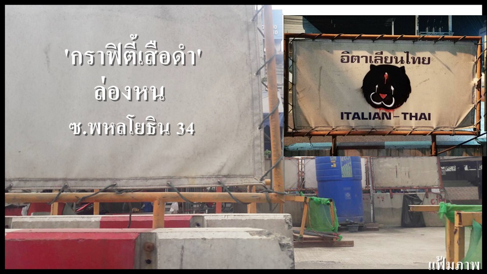 ผู้สื่อข่าวลงพื้นที่ซอยพหลโยธิน 34 ซึ่งเป็นไซต์งานก่อสร้างรถไฟฟ้าสายสีเขียวของบริษัท อิตาเลียนไทย ดีเวล๊อปเมนต์ จำกัด จุดที่มีการเเชร์ภาพกราฟิตี้รูปเสือดำถูกยิงบริเวณหน้าผากมีเลือดไหลเเละร้องไห้เป็นสายเลือด ทับบนโลโก้อิตาเลียนไทย ซิ่งเดิมเป็นรูปตัวอักษร ITสีส้ม พบว่าไม่มีรูปกราฟิตี้ดังกล่าวเเล้ว เเละมีการนำเเผ่นไวนิลใหม่มาเปลี่ยนเเทนที่