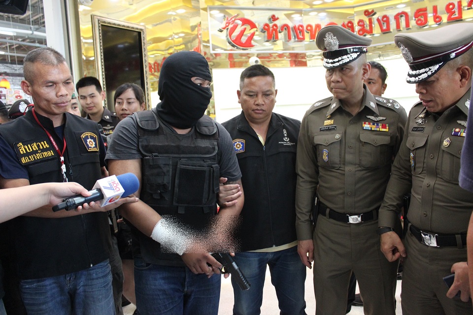 สำหรับนายมนต์นที ถูกจับกุมได้ที่ด่านตรวจในจังหวัดชุมพร ขณะขับรถยนต์อีกคันหลบหนีมุ่งหน้าไปปัตตานี ภายในรถยังพบอาวุธปืนขนาด 9 มม.ที่ใช้ก่อเหตุ และเงินสดอีกจำนวนหนึ่งที่ได้จากการขายทองรูปพรรณไปแล้ว โดยผู้ต้องหาสารภาพว่าร่วมกันวางแผนกับนายโกศล บุญรอด อายุ 42 ปี โดยมาดูลาดเลาก่อนหลายวัน จากนั้นได้ซื้อรถยนต์ที่หนีไฟแนนซ์มาสวมทะเบียนเพื่อเตรียมก่อเหตุ ส่วนอาวุธปืนเป็นของตัวเองและมีทะเบียน หลังจากวางแผนเรียบร้อยแล้วได้นัดนายโกศล เพื่อลงมือ แต่นายโกศลติดธุระ ไม่ได้มาด้วย นายมนต์นที จึงก่อเหตุเพียงลำพัง เพื่อนำเงินไปใช้จ่ายและมีคดีที่ตกเป็นผู้ต้องหาพยายามฆ่าผู้อื่นในท้องที่ฉะเชิงเทรา