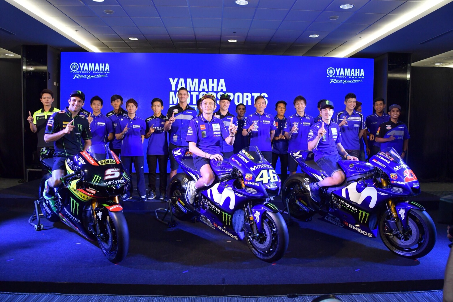 นักแข่งชั้นนำระดับโลกทีมยามาฮ่า นำโดย วาเลนติโน่ รอสซี่ (คนกลาง) มาเวริค บีญาเลส (คนขวา) สองคู่หูจากทีมมูวิสตาร์ ยามาฮ่า โมโตจีพี, โยฮัน ซาโก้ (คนซ้าย) ทีมมอนสเตอร์ ยามาฮ่า เทคทรี เจ้าของตำแหน่งรุกกี้ ออฟเดอะเยียร์ 2017 ซึ่งจะลงทำการแข่งขันรถจักรยานยนต์ทางเรียบชิงแชมป์โลกรายการ MotoGP 2018 ถ่ายภาพพร้อมกับ อเล็กซ์ โลว์ และ มิเชล ฟานเดอ มาร์ค สองคู่หูจากทีม PATA YAMAHA Official World SBK ที่จะลงชิงชัยในการแข่งขัน World Super 2018 รายการที่ยิ่งใหญ่สำหรับรถโปรดักส์ชั่นรุ่นท๊อปคลาส พร้อมกันนี้ ยามาฮ่ามอเตอร์ ยังประกาศความสำเร็จในการผลักดัน และสร้างนักแข่งดาวรุ่งจากเอเชีย โดยในปี 2017 ที่ผ่านมา ยามาฮ่ามอเตอร์ ได้ร่วมมือกับ ไทยยามาฮ่ามอเตอร์ ส่ง แสตมป์ อภิวัฒน์ วงศ์ธนานนท์ แชมป์เอเชียในรุ่น 250cc ไปลุยการแข่งระดับโลกแบบเต็มฤดูกาลในรุ่น Moto3 ภายใต้สังกัด VR46 The Master Camp ของนักแข่งแชมป์โลก 9 สมัย วาเลนติโน่ รอสซี่ และพร้อมกันนี้ยามาฮ่ายังได้เปิดตัวทีมแข่งชั้นนำที่จะลงทำการแข่งขันในระดับนานาชาติอีกด้วย โดยการแถลงข่าวมีขึ้น ณ สนามช้าง อินเตอร์เนชั่นแนล เซอร์กิต จ.บุรีรัมย์.-สำนักข่าวไทย