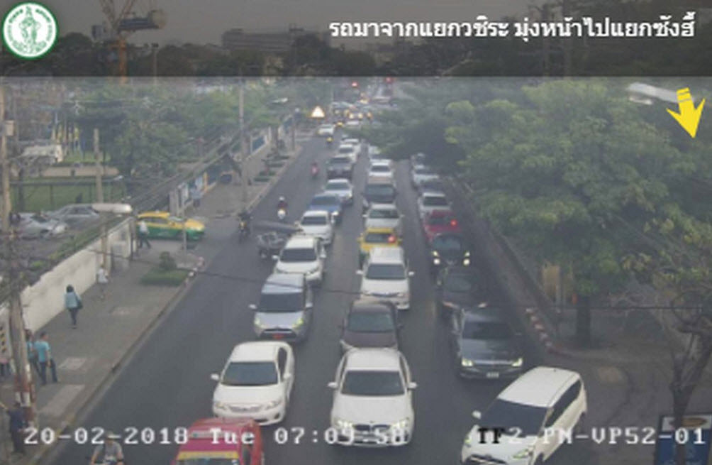 กทม. 20 ก.พ.-สวพ.FM 91 รายงานจราจร ถนนสามเสน จากแยกวชิระ มุ่งหน้าแยกซังฮี้ รถเคลื่อนตัวได้ช้า ท้ายสะสมแยกศรีย่าน