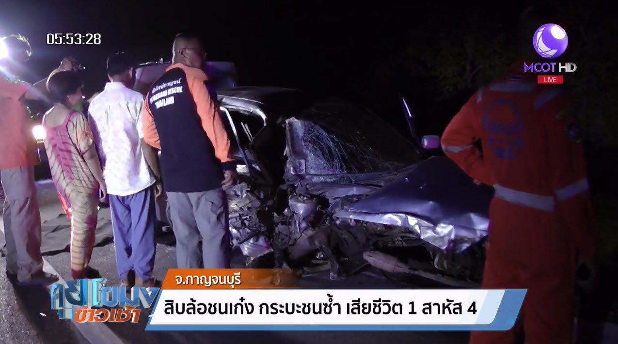 กาญจนบุรี 20 ก.พ. – สิบล้อพุ่งชนเก๋ง กระบะวิ่งมาชนซ้ำ ตาย 1 เจ็บสาหัส 4 บนถนนสายกาญจนบุรี-บ้านเก่า หมู่ที่ 7 ต.ลาดหญ้า อ.เมือง จ.กาญจนบุรี