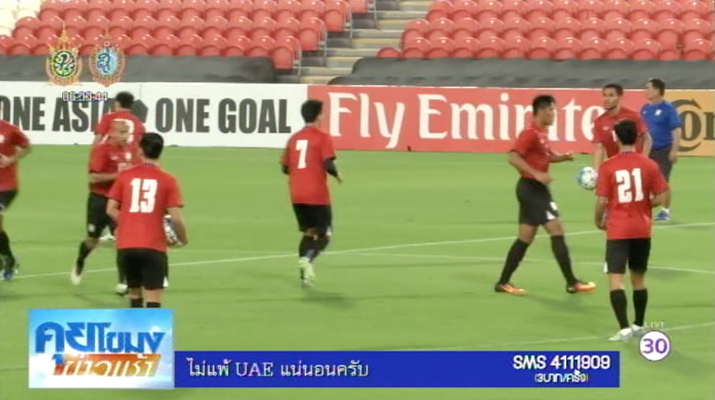 สหรัฐอาหรับเอมิเรตส์ 6 ต.ค.- เกมคัดฟุตบอลโลก 2018 ระหว่างสหรัฐอาหรับเอมิเรตส์กับทีมชาติไทย เมื่อวานนี้นักเตะไทยได้ลงซ้อมสนามจริง