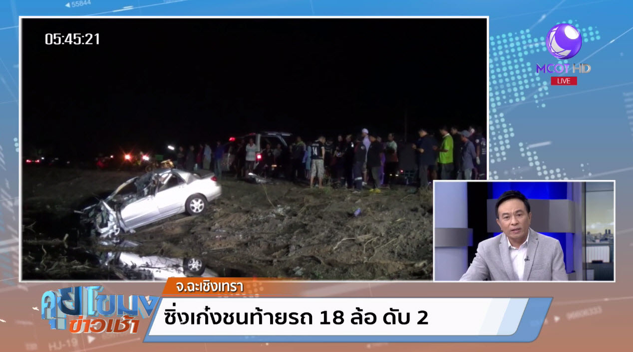ฉะเชิงเทรา 21 ก.พ. – เมื่อเวลา 22.30 น. ตำรวจ สภ.เมืองฉะเชิงเทรา ได้รับแจ้งมีอุบัติเหตุรถยนต์เก๋งชนท้ายรถบรรทุก 18 ล้อ มีผู้เสียชีวิต 2 ราย ที่ ต.บางไผ่ ถนน 304 พนมสารคาม-ขาเข้าฉะเชิงเทรา ที่เกิดเหตุพบเจ้าหน้าที่กู้ภัยฉะเชิงเทรากำลังอำนวยความสะดวกการจราจรอยู่บนถนน ใกล้กันพบรถเก๋งโตโยต้าสีบรอนซ์ ทะเบียน ฌท 5011 กรุงเทพมหานคร สภาพด้านหน้ารถพังเสียหายจากแรงกระแทก พบผู้เสียชีวิต 2 ราย ทราบชื่อนายศิริวัฒน์ หมุดเพชร และนายเอกทัศน์ จั่นประเสริฐ เป็นพนักงานโรงงานไทยแอร์โรว์ สาขาบางคล้าฉะเชิงเทรา