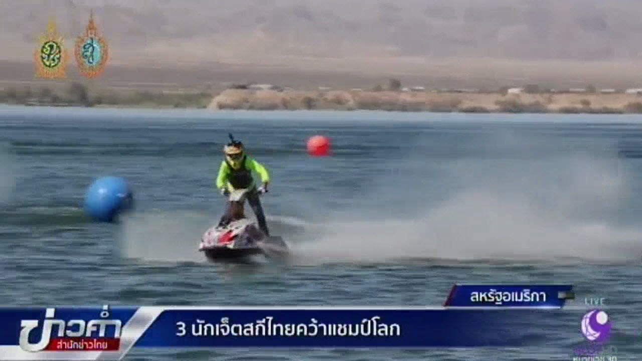 สหรัฐ 5 ก.ย.-นักเจ็ตสกีไทยคว้าแชมป์โลก ศึกเจ็ตสกี เวิลด์ ไฟนอล 2016 ที่สหรัฐ เจ็ตสกีชิงแชมป์โลก ประจำปี 2016 รายการ เวิลด์ ไฟนอล ที่สหรัฐอเมริกา เจ๊ตสกียืนห้ามแต่งเครื่องยนต์ “เจ้าแชมป์” กษิดิศ ธีระประทีป ดาวรุ่งวัย 15 ปี จากทีมเค.ที. เจ็ตสกี โดยทีมโมโตแรก เจ้าแชมป์เข้าเป็นอันดับ 2 แต่ในโมโต 2 ออกตัวได้ดีนำห่างเป็นอันดับ 1 และเข้าเส้นชัยแบบม้วนเดียวจบ เมื่อรวมผล 2 โมโตได้ตำแหน่งแชมป์โลกไปครอง