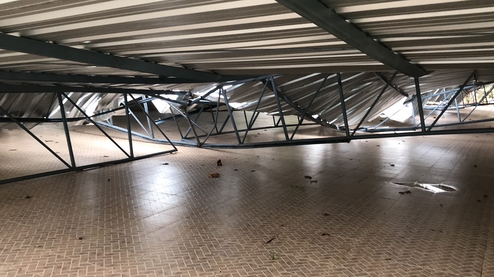 หนองคาย 22 ก.พ.- หนองคายลมฝนกระโชกแรง โครงหลังคาลานอเนกประสงค์โรงเรียนพังทั้งแถบ รวมถึงโรงเรือนสัตว์ปีกของชาวบ้าน ไก่-เป็ดตายนับร้อย