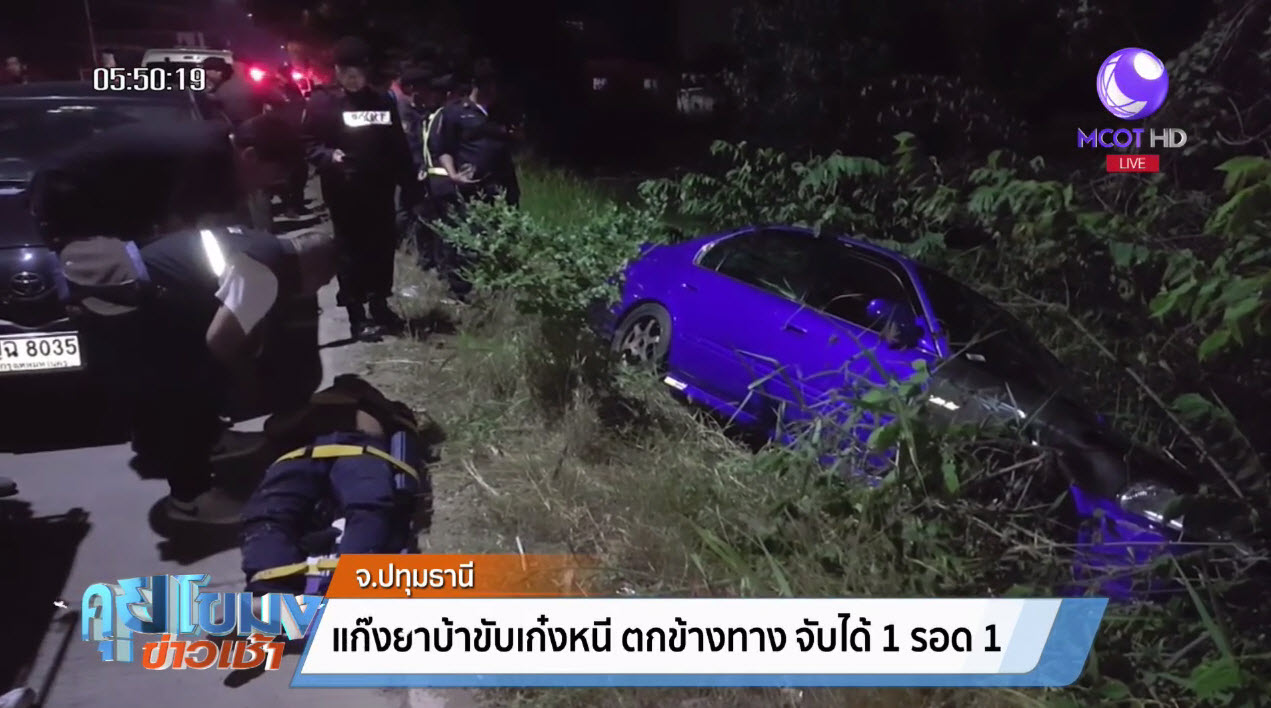 ปทุมธานี 23 ก.พ. – เมื่อเวลา 23.20 น. ที่ผ่านมา (22 ก.พ.) เกิดเหตุรถยนต์ขนยาเสพติดชนเจ้าหน้าที่ชุดสืบสวนเสียหาย 2 คัน ส่วนรถคนร้ายเสียหลักตกข้างถนนปทุมธานี-สามโคก (สายใน) หมู่ที่ 2 ต.สามโคก อ.สามโคก จ.ปทุมธานี มีผู้ได้รับบาดเจ็บ 1 ราย หลบหนีเข้าป่า 1 คน