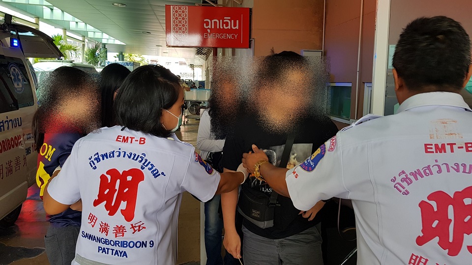 ช่วงสายวันนี้ (23 ก.พ.) เจ้าหน้าที่หน่วยกู้ชีพและมูลนิธิสว่างบริบูรณ์เมืองพัทยา จ.ชลบุรี เข้าช่วยเหลือเจ้าหน้าที่ด้านสาธารณสุขบริเวณล็อบบี้ของโรงแรมแห่งหนึ่งย่านถนนเขาพระตำหนัก ต.หนองปรือ เพื่อนำส่งโรงพยาบาลเมืองพัทยา เนื่องจากมีอาการท้องเสีย อาเจียน และอ่อนเพลีย ประมาณ 9 ราย