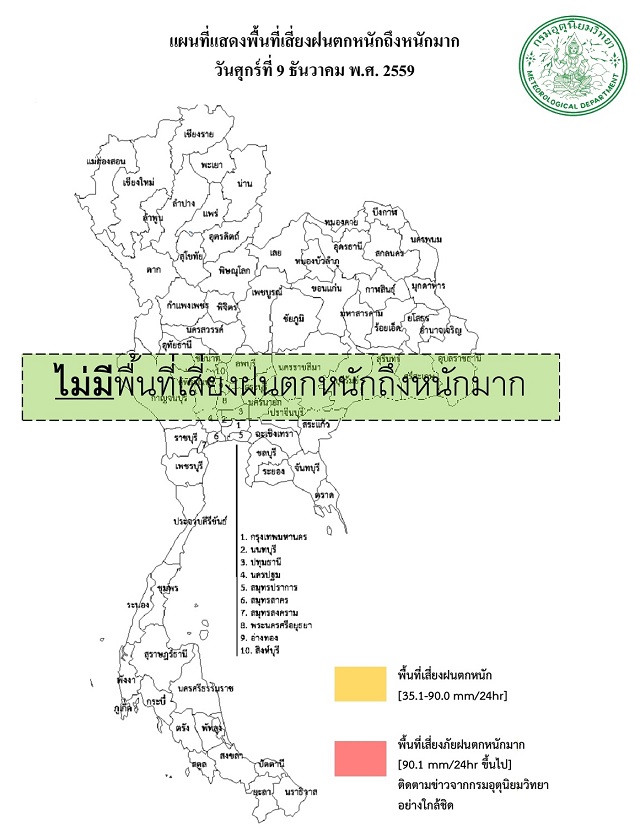 สำนักพยากรณ์อากาศ กรมอุตุนิยมวิทยา ขอยืนยันว่า ข้อมูลดังกล่าวไม่เป็นความจริงและไม่มีที่มาจากกรมอุตุนิยมวิทยาแต่อย่างใด และจากการวิเคราะห์ข้อมูลพบว่าในช่วงเวลาดังกล่าวภาคใต้จะมีฝนตกเนื่องจากอิทธิพลของลมมรสุมตะวันออกเฉียงเหนือตามฤดูกาลเท่านั้น ไม่ได้ทำให้ฝนตกหนักและน้ำท่วมได้ สำหรับหย่อมความกดอากาศต่ำบริเวณทะเลจีนใต้ตอนล่าง ในเบื้องต้นคาดว่าจะเคลื่อนตัวเข้าใกล้ปลายแหลมญวนในช่วงวันที่ 13-14 ธ.ค.59 และยังไม่เคลื่อนตัวมาบริเวณอ่าวไทย.-สำนักข่าวไทย