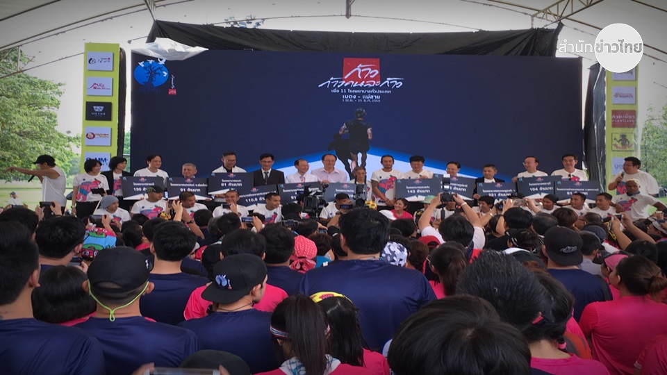 สวนรถไฟ 25 ก.พ.- ตูน บอดี้เเสลม พร้อมทีมก้าวละก้าวมอบเงินให้ 11 รพ. 1,300 ล้านบาท เพื่อจัดซื้อครุภัณฑ์การเเพทย์ พร้อมขอบคุณทุกคนร่วมเเรงร่วมใจตลอด 2 เดือน ด้านน้องมาร์ค เจ้าของฉายาพี่ตูนสูญ มาเเสดงความยินดีพร้อมรับรองเท้าที่มีผู้ใจบุญประมูลให้